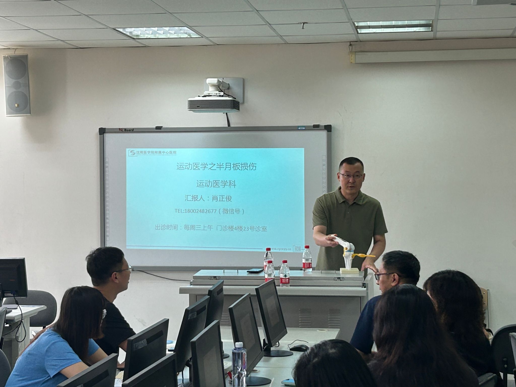 本次讲座主题为“半月板损伤诊治”,学院全体教职工到场聆听了此次讲座,现场气氛热烈。半月板损伤是运动爱好者和日常活动中极为常见的膝关节伤病,严重影响运动表现和生活质量。然而,公众对其成因、症状、治疗选择及康复过程往往存在诸多误解和困惑。针对这一需求,肖正俊医生凭借其在运动医学领域深厚的理论功底和丰富的临床经验,为在场教职工带来了一场内容翔实、深入浅出的科普盛宴。