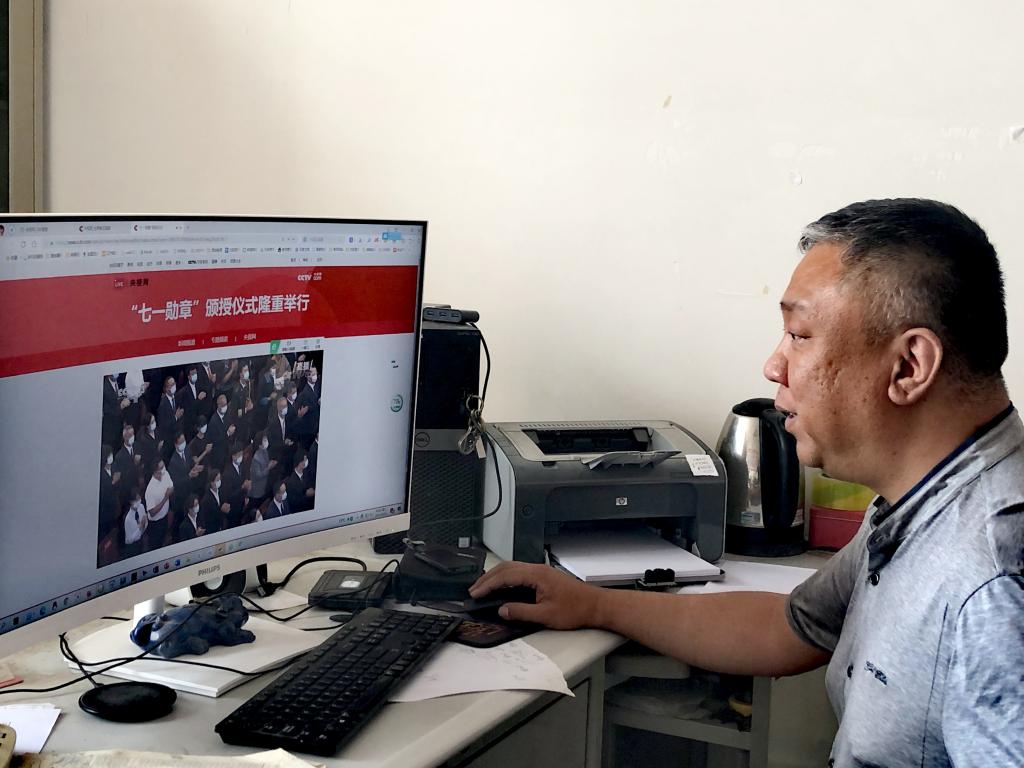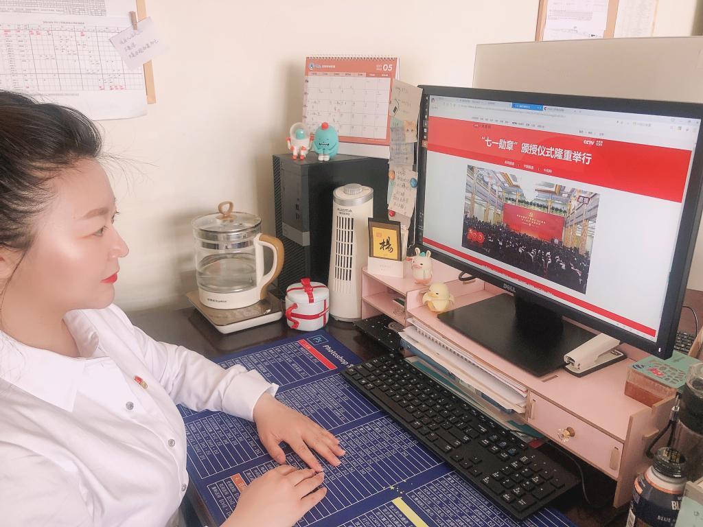 庆祝中国共产党成立100周年“七一勋章”颁授仪式6月29日上午在北京人民大会堂隆重举行。中共中央总书记、国家主席、中央军委主席习近平向“七一勋章”获得者颁授勋章并发表重要讲话。金年会jinnianhuicom党总支部组织师生通过电脑、手机等,认真收看收听仪式直播,深刻领会习近平总书记重要讲话精神,学习29位“七一勋章”获得者的先进事迹,并畅谈感想体会。