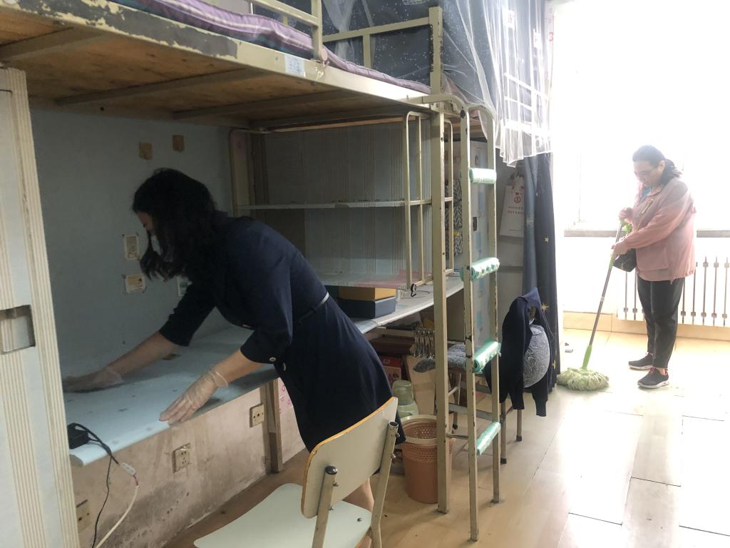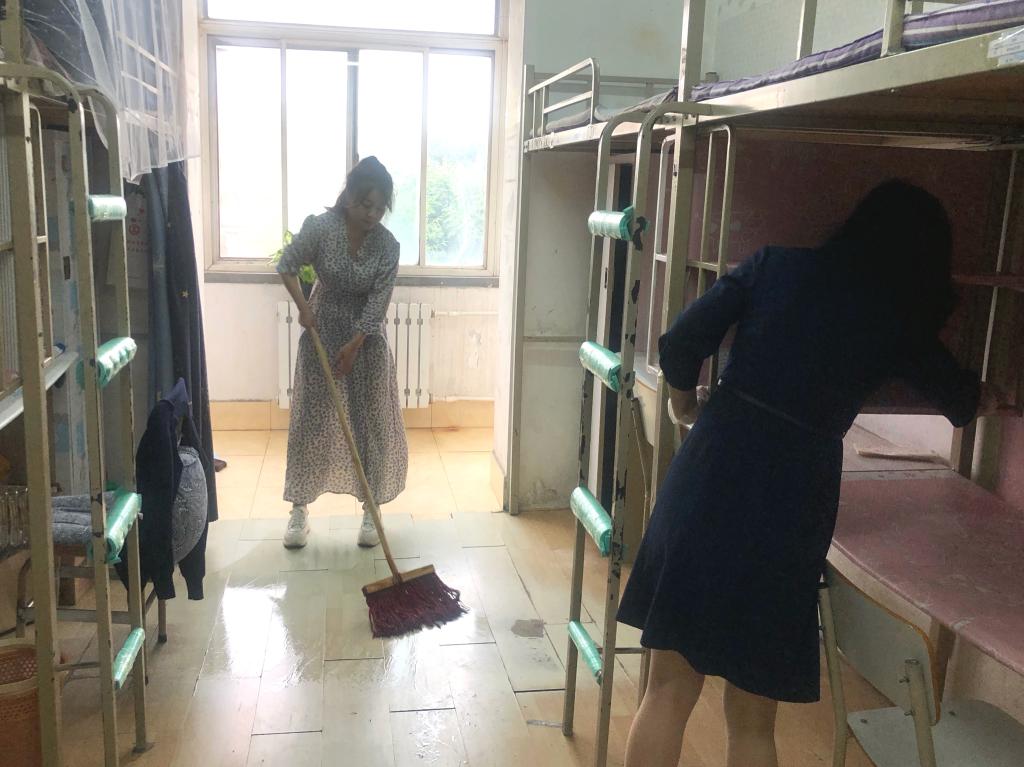 活动中,党员们积极踊跃,不怕脏累,为学生打扫寝室卫生,并在每个房间窗台处摆放绿植,用来净化空气,以实际行动践行“三全育人”理念,为学生顺利返校做好充分准备。
