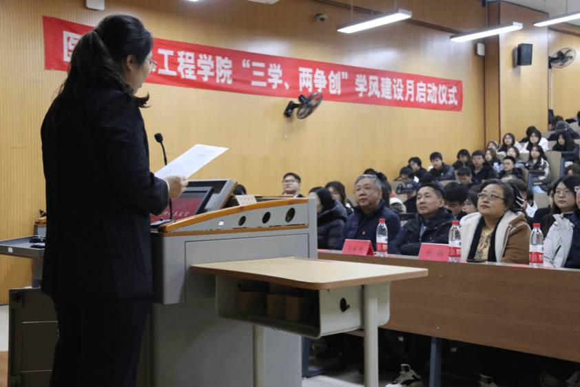 活动中党员教师代表苗丽华进行表态发言,她承诺将在学风建设中充分发挥党员先锋模范作用,以严谨的教学态度和高度的责任心助力学生成长。学生代表郭星言也表明决心,将积极践行“三学”理念,努力在活动中争创佳绩,为学院学风建设贡献力量。