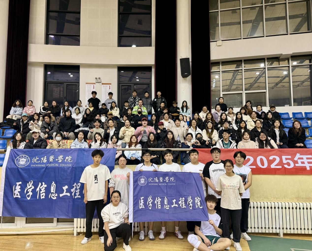 比赛期间,学院共青团组织积极营造浓厚的赛事氛围。参赛队员们每一次发球、接球、传球和扣球,都展现出他们对胜利的渴望和永不言败的决心。面对强劲的对手,队员们毫不畏惧,积极调整战术,以灵活多变的进攻和坚如磐石的防守,为观众带来一场场激动人心的比赛。看台上,各年级同学们整齐有序地就座,组成了气势磅礴的助威方阵。同学们齐声呐喊为参赛队员加油助威,为场上队员注入源源不断的精神动力,充分展现出学院学生团结一心的精神风貌。