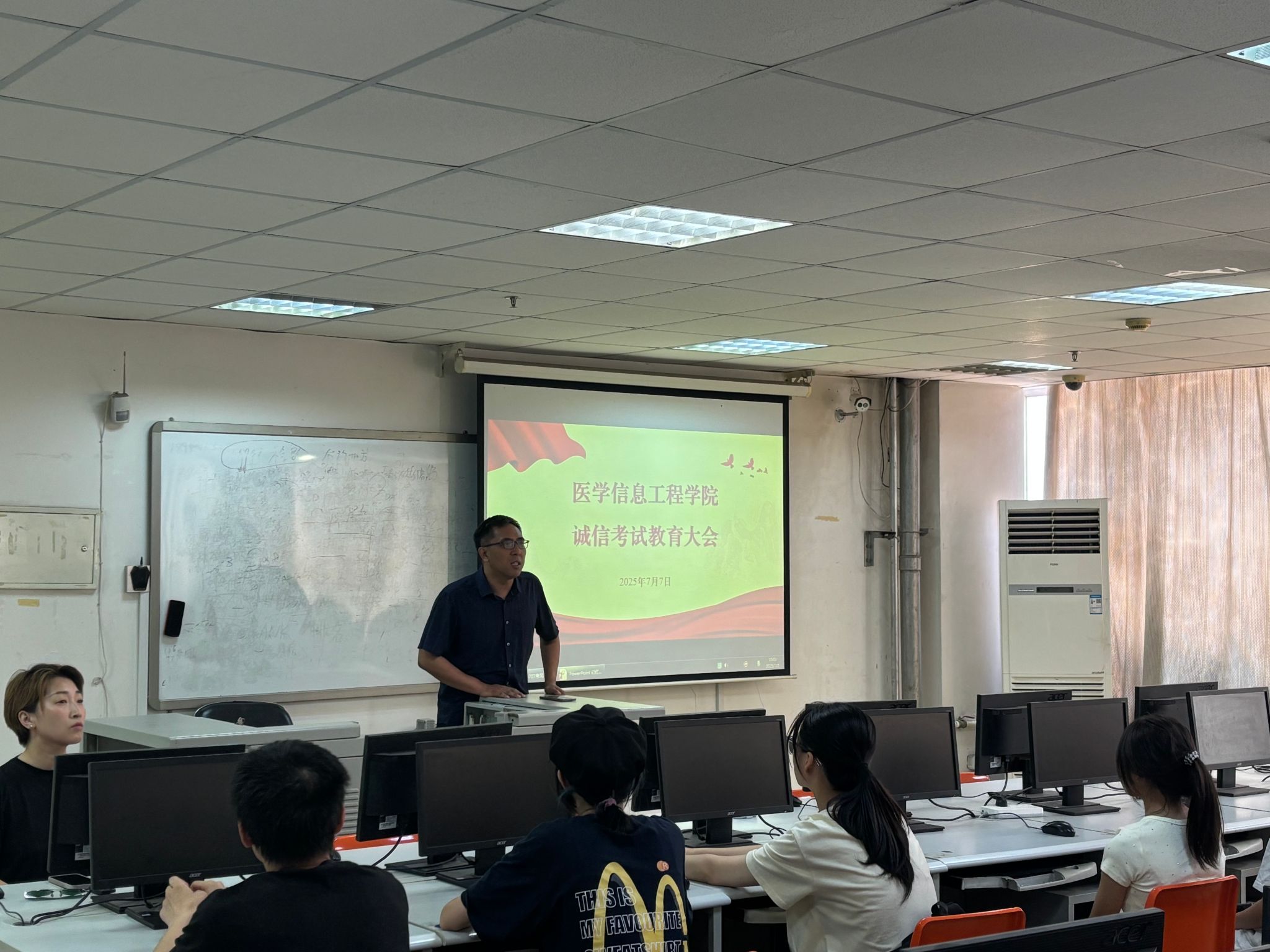 为加强学风建设,营造诚信考试氛围,2025年7月7日,金年会jinnianhuicom在二教220多媒体教室召开诚信考试教育大会。金年会jinnianhuicom院长黄和、辅导员及2023 -2024年级在校学生参会。