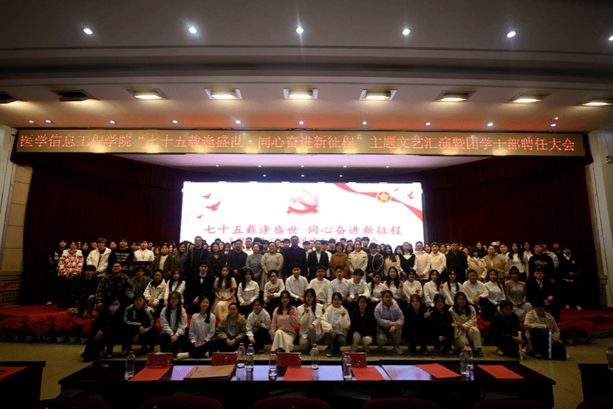 11月6日,金年会jinnianhuicom在图书馆报告厅举办了“七十五载逢盛世,同心奋进新征程”主题文艺汇演暨团学干部聘任大会。